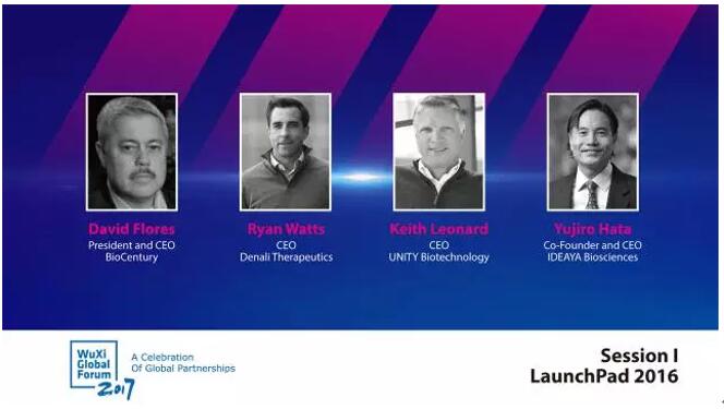 在第五届药明康德全球论坛的第一个专题讨论“LaunchPad 2016”上,我们关注2016年的几家焦点新锐。众所周知,新药研发之旅充满着曲折和坎坷,癌症、中枢神经系统疾病以及抗衰老领域尤甚。面对这些棘手的顽疾,三家年轻的公司勇敢地站了出来,得到了投资界的一致看好:专注于中枢神经疾病新药研发的Denali Therapeutics获得了1.3亿美元的B轮投资、助力重新定义衰老的Unity Biotechnology完成了价值1.16亿美元的B轮融资、开发创新癌症疗法的IDEAYA Biosciences在A轮融资中募得了4600万美元,并被业内知名媒体FierceBiotech评选为年度“十五家猛公司”(Fierce 15)之一。这三家新锐将用怎样的全新视角来挑战顽疾,并将新药带入临床试验?BioCentury总裁兼首席执行官David Flores先生在本场专题讨论上,与这三家明星公司的首席执行官们做了一场深入的探讨。