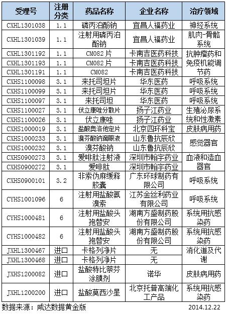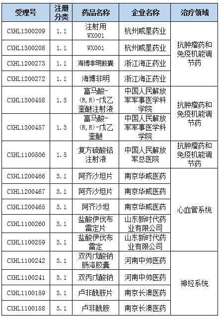 表1:在审批化药信息