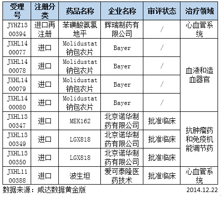 表2:审批完毕进口及进口再注册化药