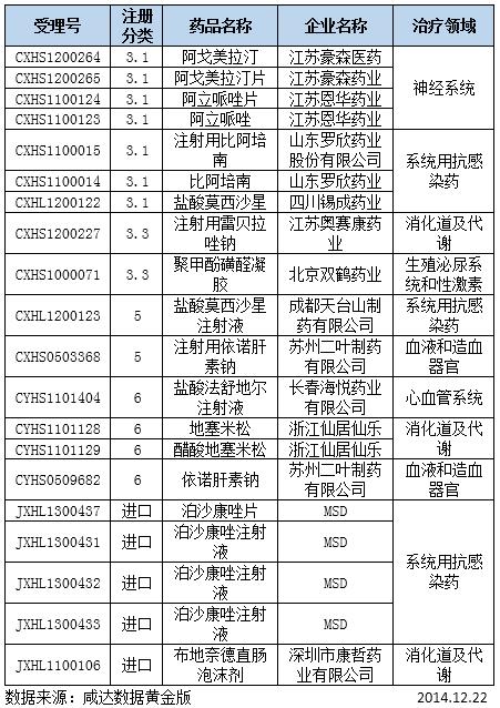表3:审批完毕的新药