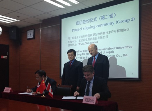 本次交流会签署了四个中加合作项目。其中之一是我会会员企业亚宝药业集团与西安大略大学的合作项目:“用于脓毒血症治疗的创新型生物药物”技术许可框架协议。该项目是在2013年7月任武贤董事长参加中国药促会加拿大考察团时与加方开始洽谈的。在中国药促会的推动下,双方负责人就相关问题进行了交流,并达成了合作的意向,最终促成了该项目的合作。这是去年中国药促会赴加拿大考察团取得的成果,此次成功的经验也值得我会在今后的国际合作项目领域推广,并进行更多深层次的尝试,切实加深与世界各国医药领域前沿的研究所、大学交流。