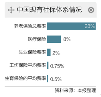 如此算来,在全国绝大部分地区,“五险”的总费率已达到企业工资总额的39.25%。其中,企业负担为28.25%,个人负担为11%,企业社保负担非常沉重。