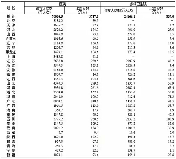 表1 全国医疗卫生机构医疗服务量