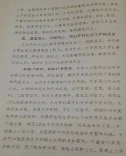 3月26日,2015年全国药政工作会议在京召开,落实国务院2月底发布的《关于完善公立医院药品集中采购工作的指导意见》(也就是国务院7号文此次会议主要议题。国务院医改办主任卫计委副主任、国务院医改办主任孙志刚就此进行了论述。