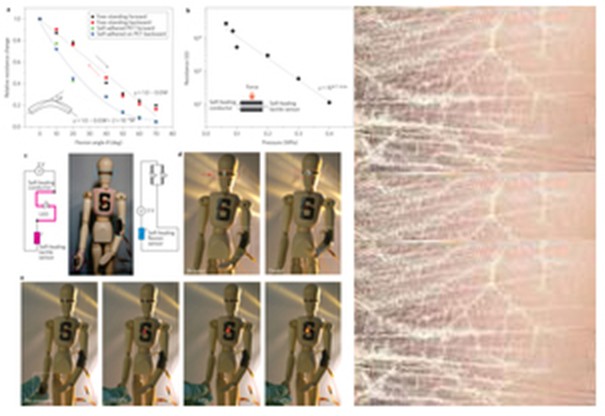 研究人员一直在竭力模仿人类皮肤的卓越性能,如皮肤的触感(发送给大脑的关于压力和温度的精确信息)以及高效的自愈能力。斯坦福大学化学工程系鲍哲南教授及其团队成功地将上述两项性能集成在单个合成材料中。