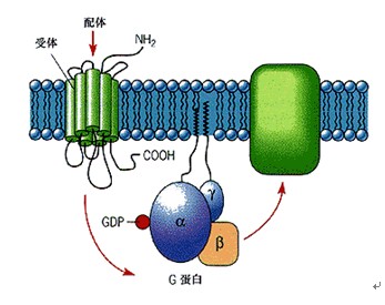 G蛋白偶联系统由三部分组成:表面受体、G蛋白和效应物