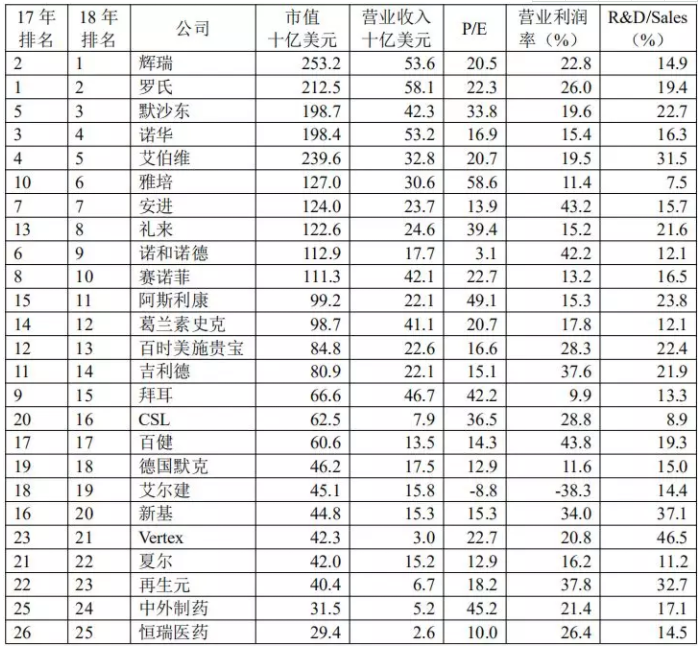 全球制药公司市值排名TOP 25