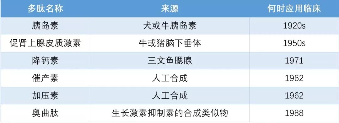 表1.早期多肽药物的来源