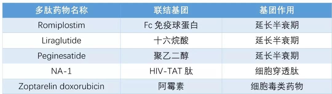 表2. 部分常见多肽药物偶联物