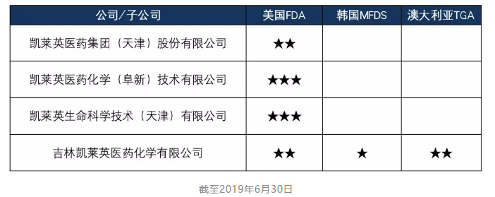 凯莱英及各子公司累计通过的国际官方审查及次数