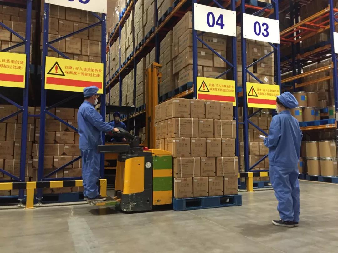 ▲天津药研院捐赠的药品伊诺舒®(盐酸氨溴索注射液)正按流程紧急出库。