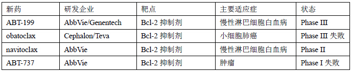 Teva曾经将Bcl-2抑制剂obatoclax推进III期临床,但最终放弃了obatoclax的开发。Obatoclax的Ki值只有0.22μM,而ABT-199的Ki值小于0.01nM。国内江苏亚盛申报了两个Bcl-2抑制剂在研,其中R-(-)-醋酸棉酚处于II期临床,APG-1252处于临床前。