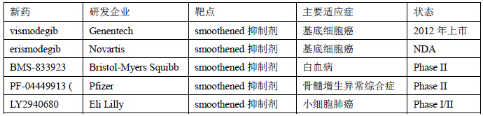 Genentech上市了vismodegib用于治疗基底细胞癌,Novartis的同类药物sonidegib(erismodegib, LDE225)治疗基底细胞癌的II期试验成功,2014年第二季度已经向欧洲递交上市申请。
