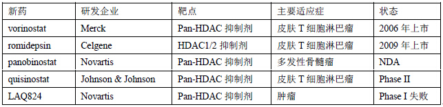 深圳微芯自主研发了HDAC抑制剂西达本胺,目前已申报生产,用于治疗非霍奇金淋巴瘤,另外用于乳腺癌、非小细胞肺癌肺癌分别处于I期、II期临床研究中。