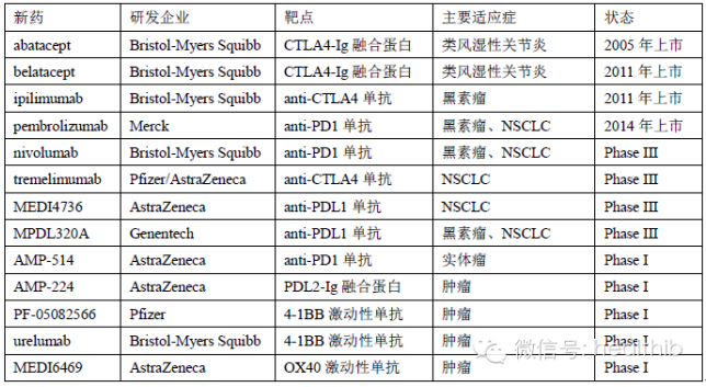 国内多个厂家的anti-PD1/PDL1药物处于临床前,但目前还都没有申报临床,Merck、Bristol-Myers Squibb于2013年5月向CFDA递交了临床申请。中信国健2005年申报了CTLA4-抗体融合蛋白,用于治疗自身免疫性疾病。