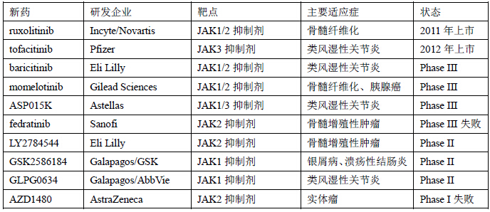 Janus kinase家族有JAK1、JAK2、JAK3、TYK2四个成员,其抑制剂主要用于治疗自身免疫疾病如类风湿性关节炎、溃疡性结肠炎、银屑病、克罗恩病和骨髓肿瘤,目前FDA已经批准两个JAK抑制剂:tofacitinib、ruxolitinib。JAK抑制剂是口服抗风湿药物,很好地弥补了单抗、融合蛋白等生物制品成本高的缺点,国内自主研发的JAK抑制剂还很少,只有江苏恒瑞申报SHR0302,用于治疗类风湿性关节炎。