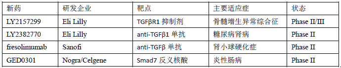 TGFβ/Smad是一条重要的信号转导通路,TGFβ(TGFβ1/2/3)与受体结合后,激活细胞内的R-Smads(Smad1/2/5/8),r-Smads与Co-Smad(Smad4)结合后将信号传至细胞核内,另外I-Smads(Smad6/7)抑制R-Smads和Co-Smad的激活。2014年4月,Celgene以26亿美元从Nogra Pharma买入Smad7反义核酸GED0301,用于治疗克罗恩病、溃疡性结肠炎。