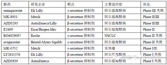 淀粉样前体蛋白经过β-secretase(BCAE)、γ-secretase两次剪切转变为不溶性的Aβ40/42,引起淀粉样蛋白斑,抑制β-secretase或γ-secretase可能对阿尔兹海默病有效。另外γ-secretase还负责剪切Notch受体产生NICD,因此通过抑制γ-secretase抑制Notch信号通路,具有治疗肿瘤的潜力。