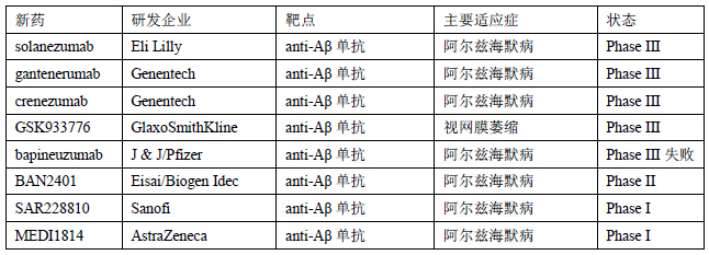 β-淀粉样蛋白是淀粉样前蛋白经 β-secretase、γ-secretase两次剪切后产生的不溶性蛋白,长度是33-36个氨基酸残基,最常见的形式是Aβ40和Aβ42。Anti-Aβ单抗能够清除β-淀粉样蛋白,因此被开发用于治疗阿尔兹海默病病,目前的临床数据显示疗效相对轻微。