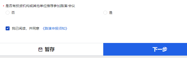 1、完整地阅读过《路演申报须知》后,勾选“我已阅读,并同意”进行项目信息填写。