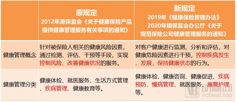 健康险产品中健康管理服务新旧规定的对比,资料来源:银保监会官网,动脉网制图