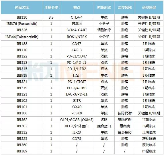 22个产品中,仅IBI376、IBI344及IBI362等3个1类新药为小分子化学药,其余产品均为大分子生物药,涵盖单抗、双抗及CAR-T领域,多个产品具备First-in-Class或Best-in-Class潜力。