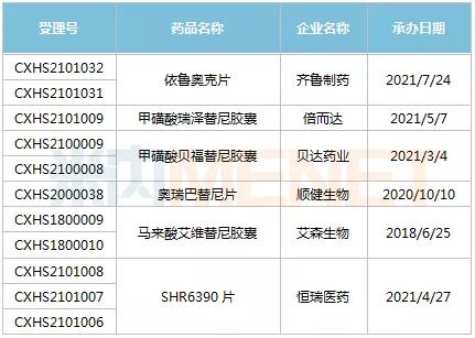 替尼类药物有4款,包括艾力斯的甲磺酸伏美替尼片、基石药业的普拉替尼胶囊、和黄医药的赛沃替尼片及泽璟制药的甲苯磺酸多纳非尼片。值得关注的是,国内还有6家药企的蛋白激酶抑制剂1类新药上市申请在审中,包括齐鲁制药、恒瑞医药、贝达药业、艾森生物等。
