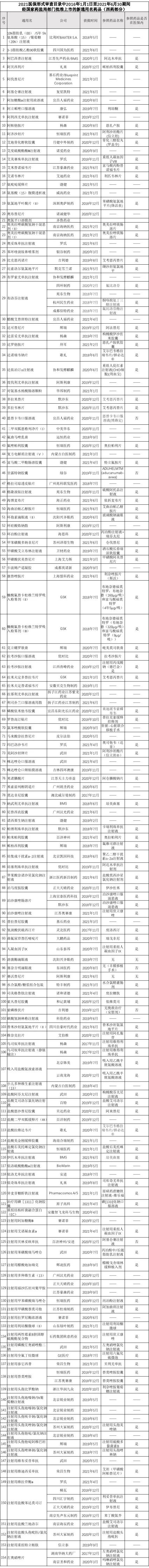 附:2021医保形式审查目录中2016年1月1日至2021年6月30期间,经国家药监局部门批准上市的新通用名药品
