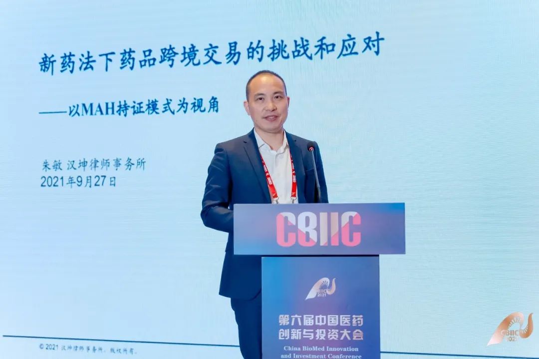 最后,汉坤律师事务所合伙人朱敏以“药品跨境交易新模式及其挑战——以MAH持证模式为视角”为题进行主题报告。朱敏首先介绍了新药法下药品跨境交易的困境。他表示,目前药品跨境交易的困境主要集中体现在IP的归属和布局、权利义务的切分、生产和供货、推广和经销、付款和税筹等方面。朱敏认为,首先要明确MAH与代理人或其他相关方之间的权利义务关系,甚至一定程度上可以通过“协议安排”,实现“名义持证人+协议代理人”的目的。