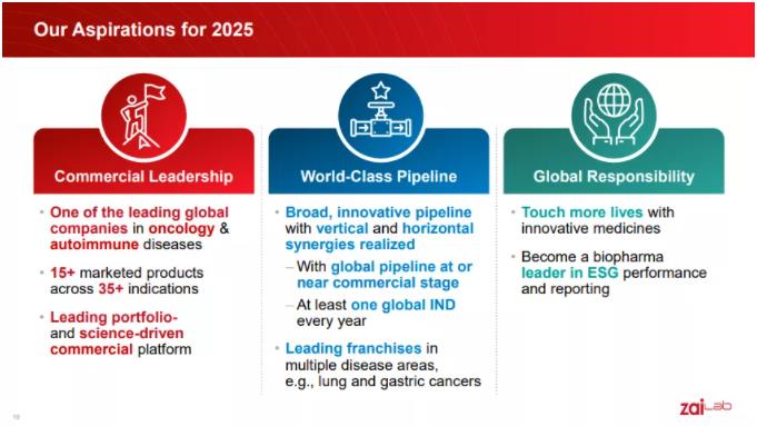 “我们已经为公司的增长奠定了坚实的基础,通过产品管线、研发平台和人才配备,推动公司未来取得更多成功。在此基础上,我们的目标是到2025年拥有超过15个上市产品,覆盖超过35个适应证。我们立志成为一家全球领先的生物医药公司,惠及世界各地尽可能多的患者。”
