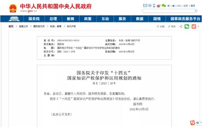 “十四五”国家知识产权保护和运用规划