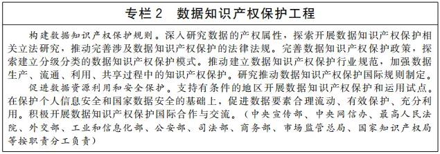 完善知识产权保护政策。健全大数据、人工智能、基因技术等新领域新业态知识产权保护制度。研究构建数据知识产权保护规则。完善开源知识产权和法律体系。完善电子商务领域知识产权保护机制。健全遗传资源获取和惠益分享制度,建立跨部门生物遗传资源获取和惠益分享信息共享制度。制定传统文化、民间文艺、传统知识等领域保护办法。建立与非物质文化遗产相关的知识产权保护制度。完善体育赛事节目、综艺节目、网络直播等领域著作权保护制度。完善红色经典等优秀舞台艺术作品的版权保护措施。完善服装设计等时尚产业知识产权保护政策。健全药品专利纠纷早期解决机制,制定相关配套措施。完善中医药领域发明专利审查和保护机制。健全绿色技术知识产权保护制度。完善高校知识产权保护管理规定。建立知识产权侵权损害评估制度。(中央宣传部、中央网信办、最高人民法院、教育部、财政部、生态环境部、文化和旅游部、市场监管总局、广电总局、国家林草局、国家中医药局、国家药监局、国家知识产权局等按职责分工负责)