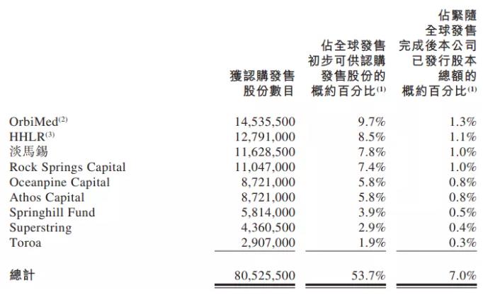 基石投资者共认购8052万股,认购金额为10.77亿港元,包括奥博资本、高瓴资本、淡马锡等。其中,高瓴资本独家投资三叶草生物B2轮的1.72亿元融资,高瓴资本和淡马锡今年3月领投了三叶草生物的C轮2.3亿美元融资。