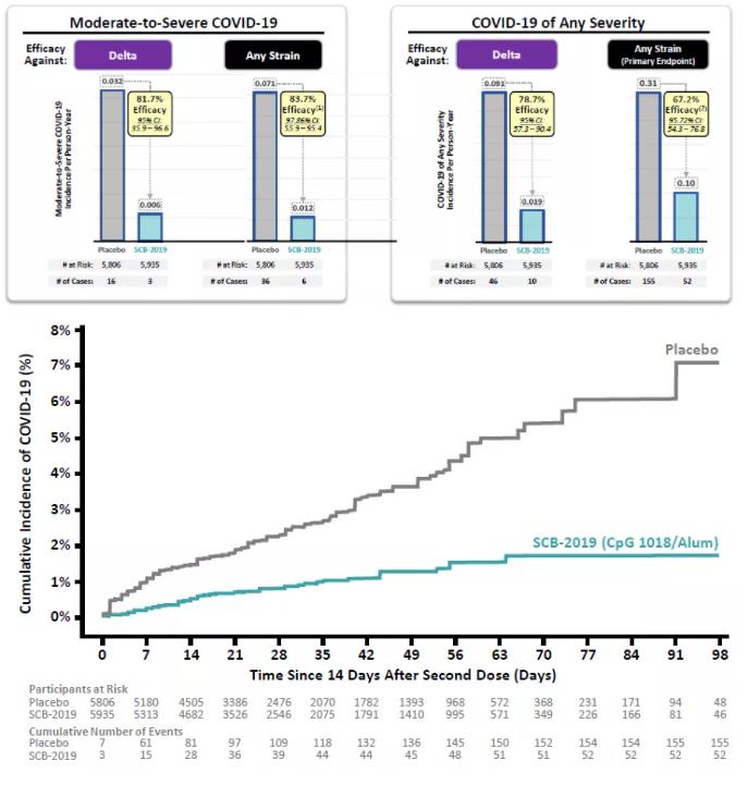 2021年9月22日,三叶草生物公布新冠疫苗SCB-2019的2/3期临床结果。SCB-2019整体保护率为67.2%,对于Delta突变株的保护率为78.7%。2021年6月30日,三叶草生物与Gavi签订4.14亿剂疫苗预购订单。