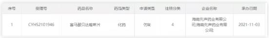 11月3日,先声药业递交的富马酸贝达喹啉片上市申请获CDE受理,注册类型为4类。这是先声药业今年报产的第11款仿制药。作为老牌药企,先声药业的仿制药业务蒸蒸日上,创新药研发也在快速跟进中。