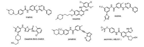 图5.FDA已经批准上市的BCR-ABL抑制剂的结构