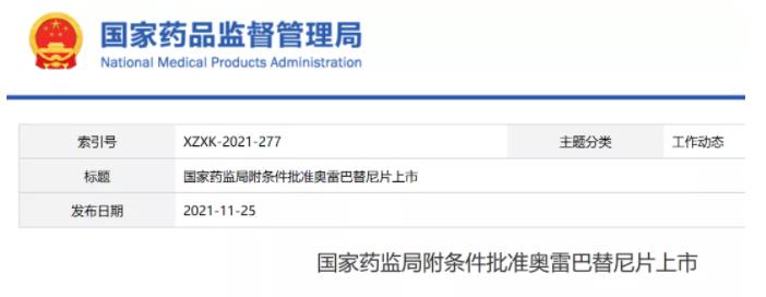 [1]国家药监局附条件批准奥雷巴替尼片上市 (2021-11-25). Retrieved Nov 24,2021, from https://www.nmpa.gov.cn/yaowen/ypjgyw/20211125145028194.html