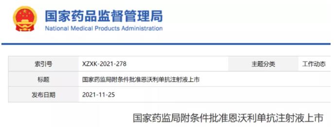 [1]国家药监局附条件批准恩沃利单抗注射液上市 (2021-11-25) . Retrieved Nov 24,2021, from https://www.nmpa.gov.cn/yaowen/ypjgyw/20211125145106104.html