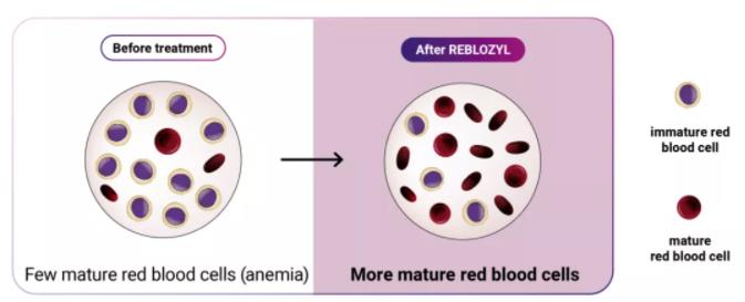 ▲Reblozyl能增加患者血液中血红蛋白含量,增加成熟红细胞的分化(图片来源: reblozyl.com)