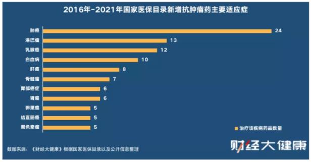 不仅是靶向药,2016年以来,国家医保目录新增肺癌用药24个,位居新增榜首。乳腺癌、肝癌等大癌种药品也相继被纳入。