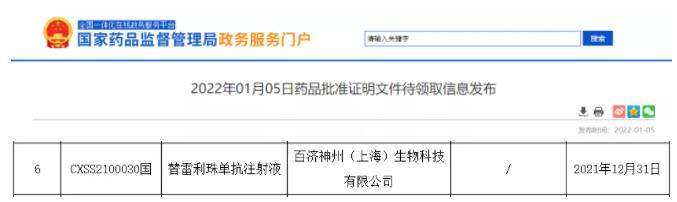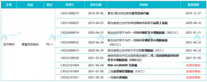 1 月 5 日,NMPA 最新批件显示,百济神州 PD-1 单抗新适应症获批上市,用于治疗接受铂类化疗后出现疾病进展的二或三线局部晚期或转移性非小细胞肺癌(NSCLC)。查看审评进度