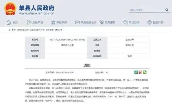 山东菏泽单县通报“全村脑中风”事件。单县人民政府官网截图