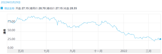 图表1. 信达生物的股价走势(2021.3.30-2022.3.29)