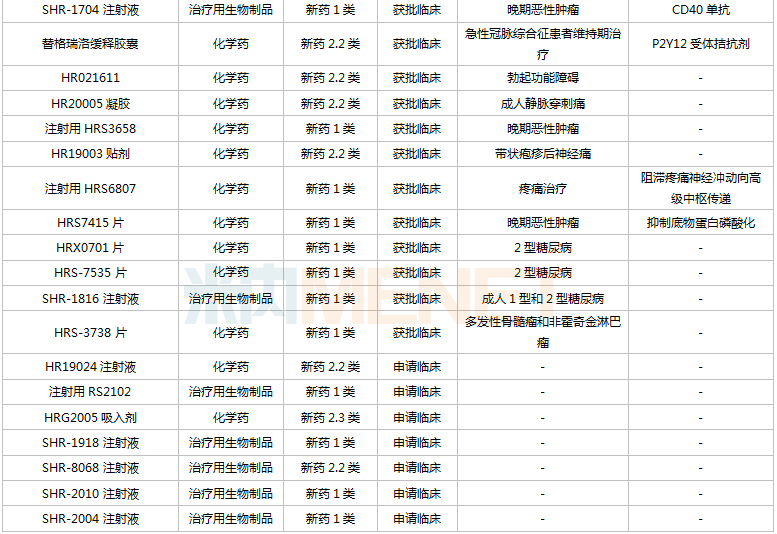恒瑞医药已过评品种
