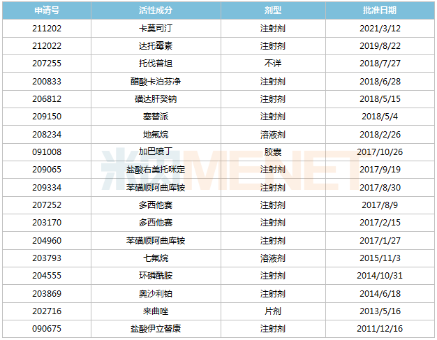 来源:米内网MED2.0中国药品审评数据库