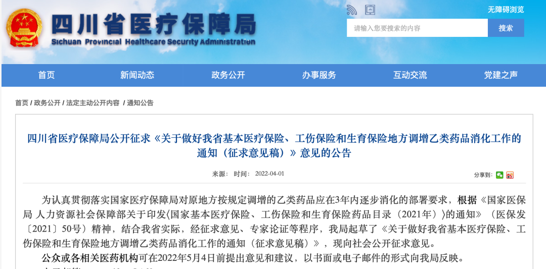 4月1日,四川医保局印发通知称,地佐辛、谷红、雷贝拉唑等70种药品于2023年1月1日起不再纳入省基本医疗保险、工伤保险和生育保险支付范围。