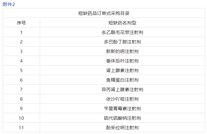 短缺药品11种,原则上以预采购量的100%作为约定采购量