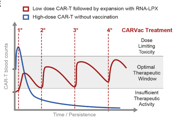 据悉,这也是首次通过 mRNA 疫苗来改善 CAR-T 细胞的扩增和持久性的首次人体试验。