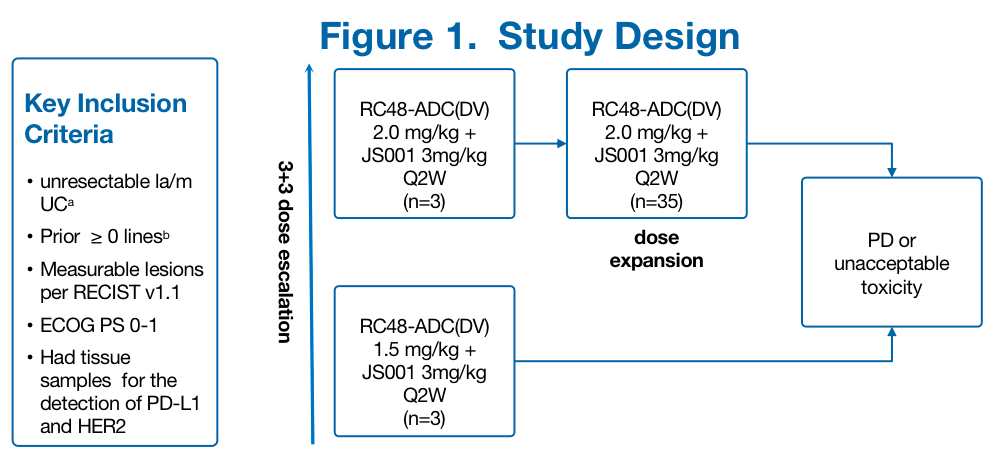 RC48-ADC联合特瑞普利单抗(toripalimab)在局部进展或转移性尿路上皮癌患者中的Ib/II期研究初步结果(RC48-C014试验,NCT04264936)