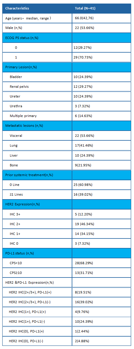 临床前研究表明,ADC与PD-1可能具有协同抗肿瘤作用。在前期临床试验结果的基础上,我们进一步探讨了RC48-ADC联合Toripalimab(JS001)治疗mUC患者的疗效和安全性。